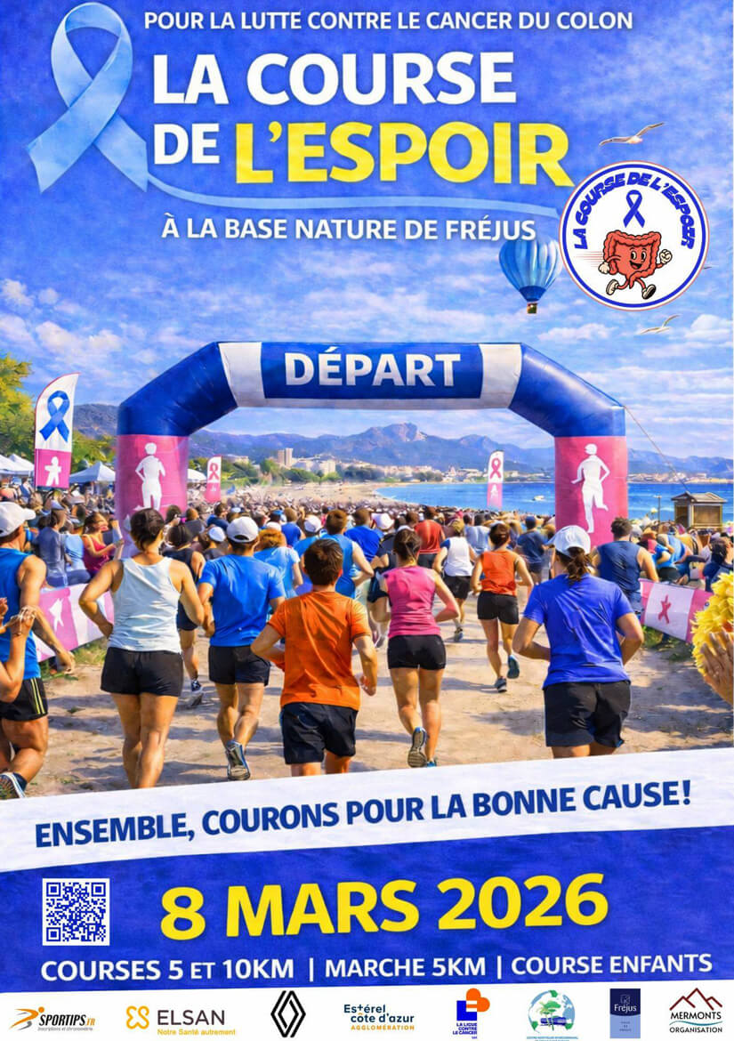 Le 8 mars 2026, sous le signe de la solidarité et de la santé, la délégation Fréjus/Saint-Raphaël de la Ligue contre le cancer Var 83 a participé à la Course de l’Espoir. Organisé dans le cadre de la campagne nationale Mars Bleu, cet événement avait un objectif clair : sensibiliser le public au dépistage et soutenir la recherche contre le cancer colorectal.