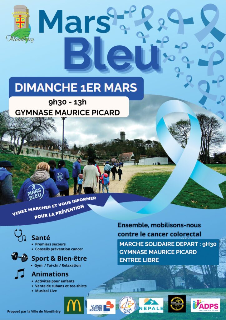 Dimanche 1er mars 2026, de nombreux Montlhériens se sont mobilisés au Gymnase Maurice Picard à l’occasion de Mars Bleu, la campagne nationale de sensibilisation au cancer colorectal. Tout au long de la matinée, l’événement, organisé en collaboration avec la Ligue contre le cancer, l’ADPS, et de nombreuses associations, a proposé aux petits et grands de participer à une marche solidaire, d’assister à des ateliers de prévention, de découvrir des animations sportives et de bien-être, et bien sûr de profiter d’une ambiance conviviale rythmée par chants, danse et animations !