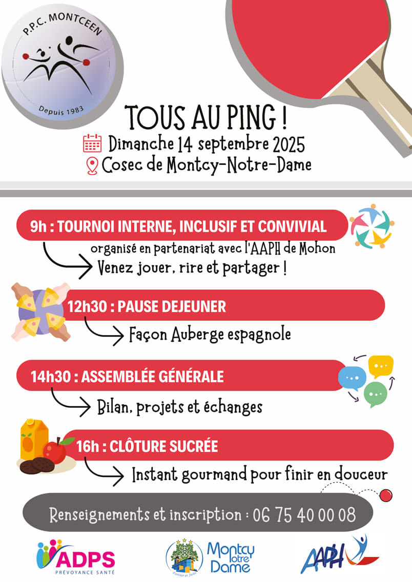 Le 14 septembre dernier, l’ADPS a remis un don à l’association PING PONG CLUB MONTCEEN pour le projet des Olympiades à Montcy Notre Dame (08).