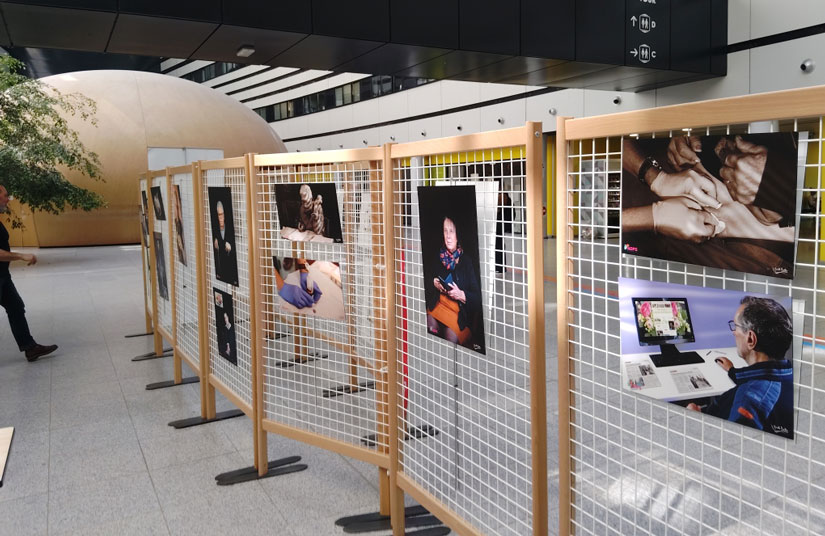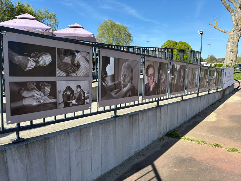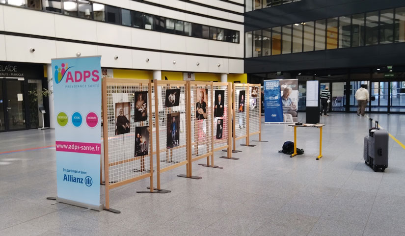L’aventure ne s’est pas arrêtée aux portes de l’hôpital. Pour donner une seconde vie à ces témoignages visuels, les photos ont été imprimées sur des bâches pour être présentées en extérieur.